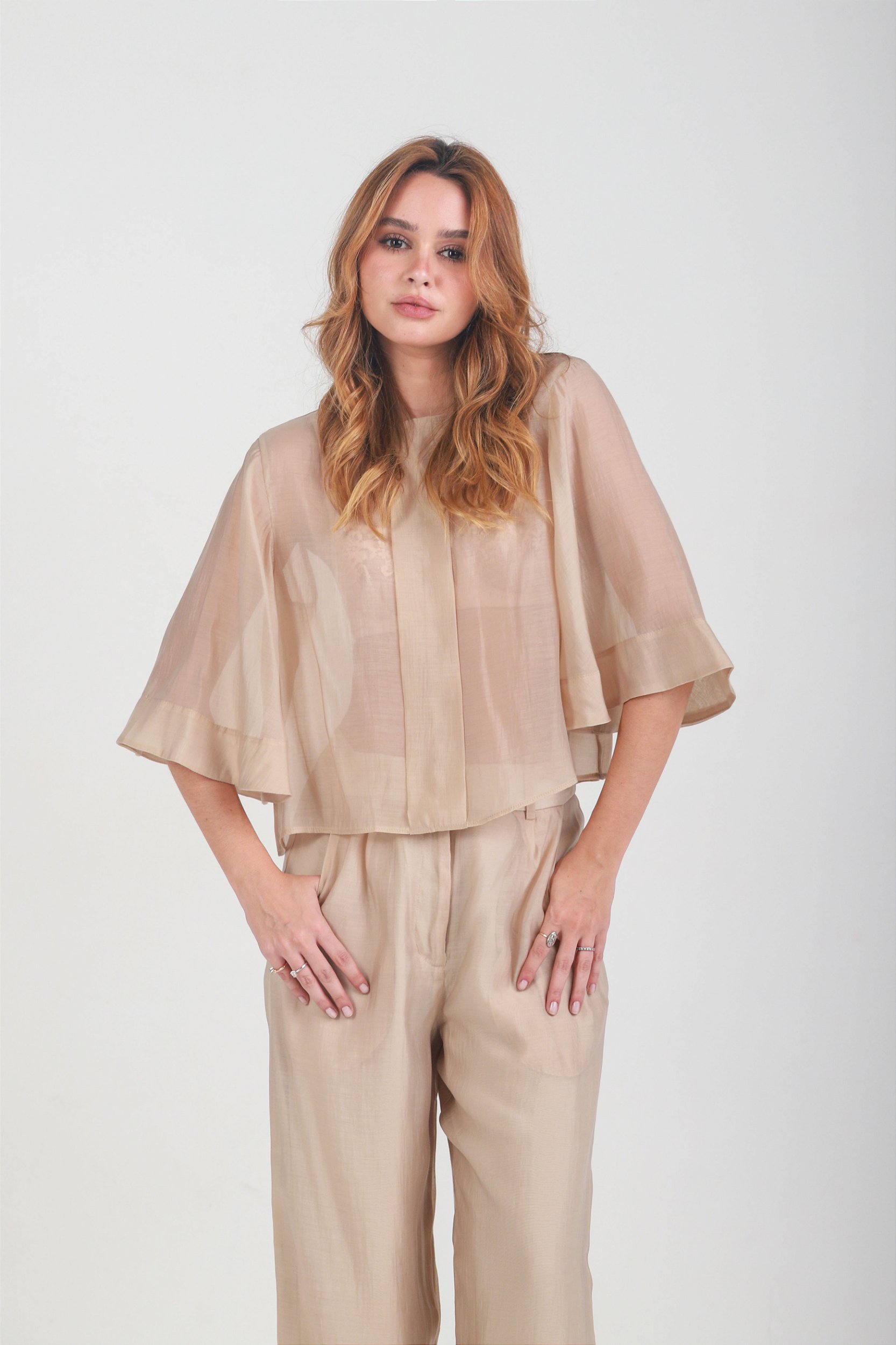 Blusa confeccionada em liocel, de toque leve, fluidez elegante e transparência sutil. A modelagem solta proporciona movimento e conforto, enquanto o design minimalista valoriza a delicadeza do tecido e o acabamento refinado da peça.