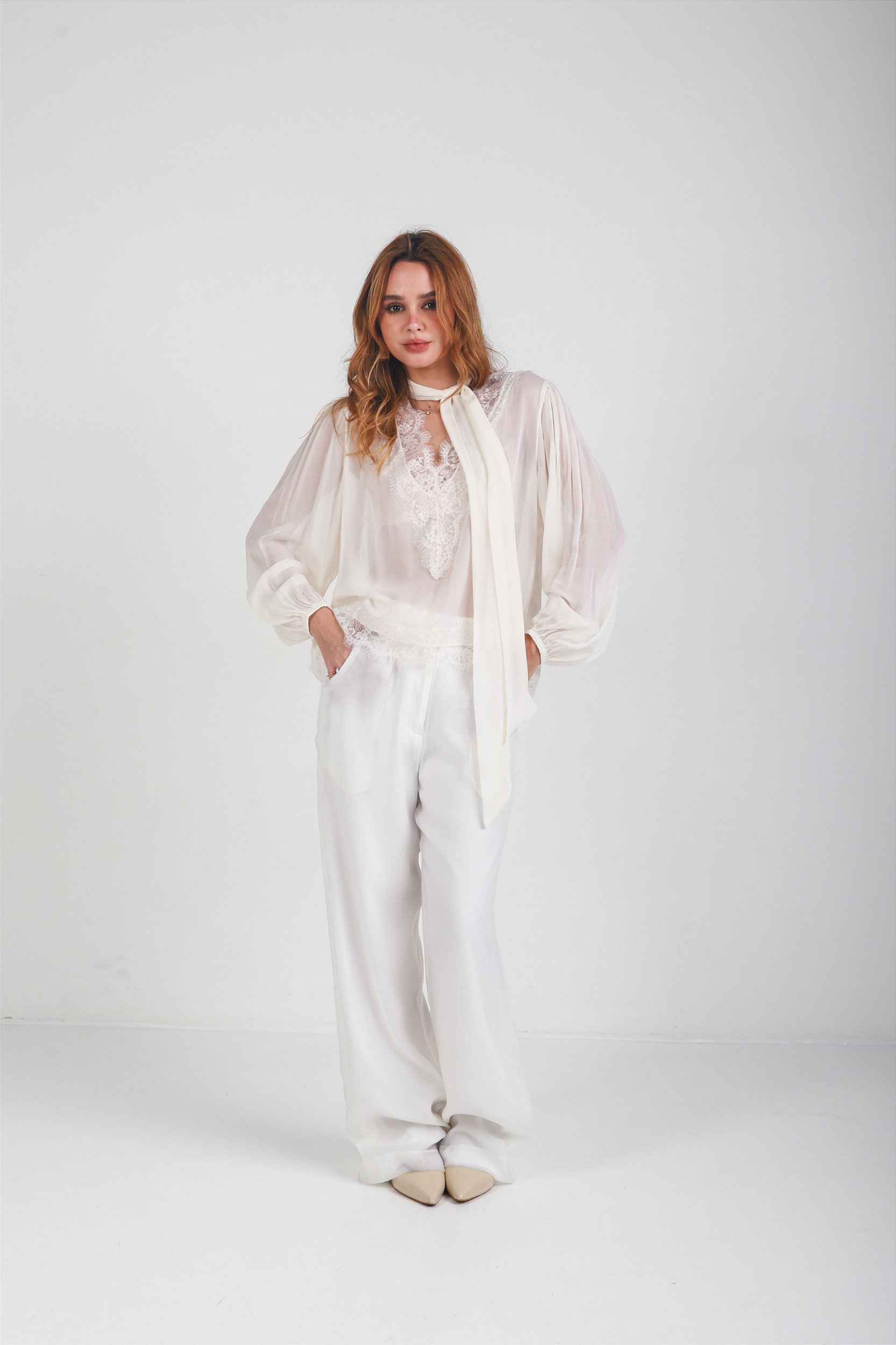 Calça confeccionada em tecido de liocel com poliéster, de toque extremamente macio, caimento fluido e aparência sofisticada. A presença do forro em viscose garante conforto absoluto e segurança ao vestir, sem comprometer a leveza da peça.
