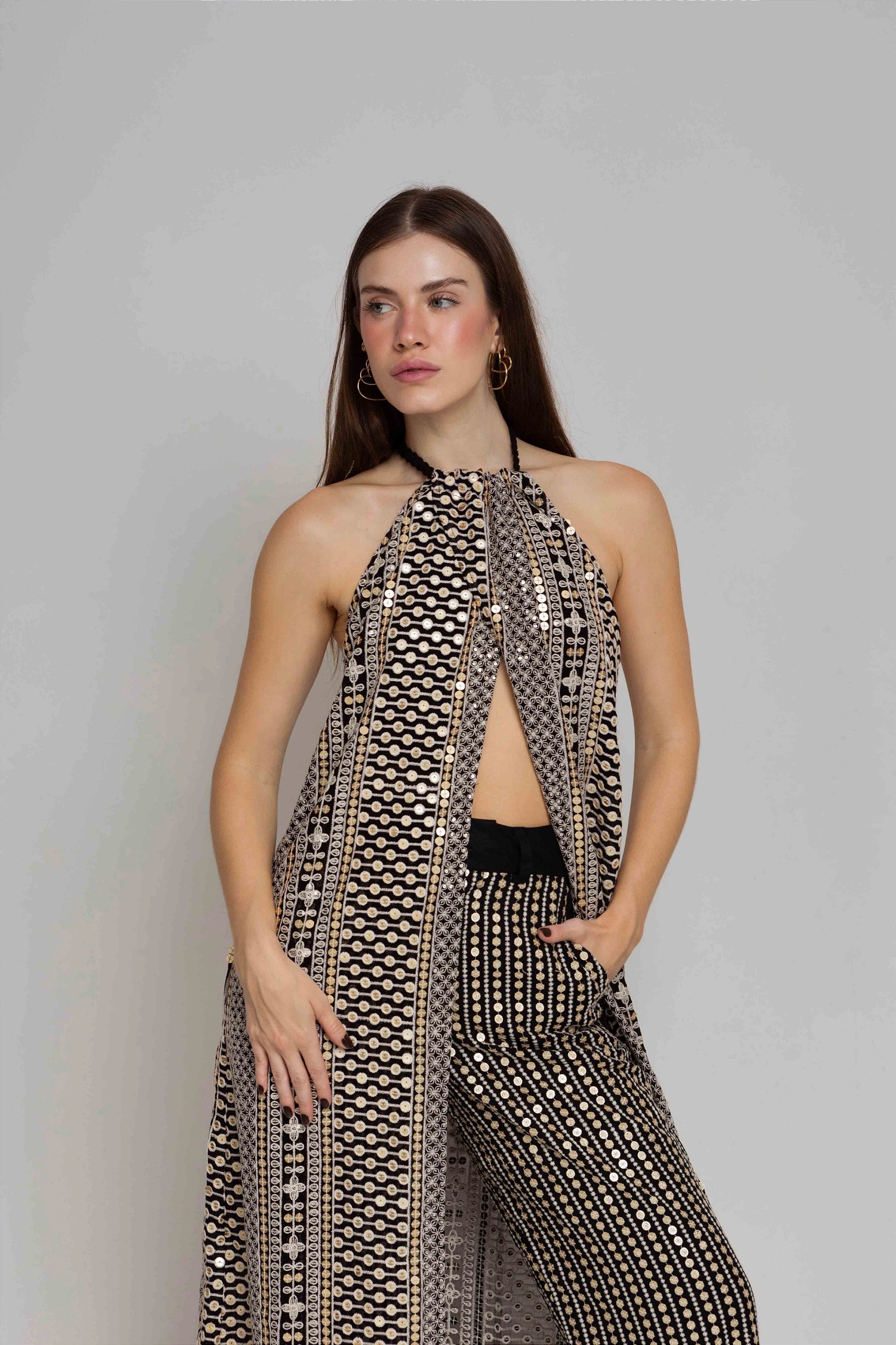 Túnica confeccionada em tecido inteiro bordado, com fechamento no pescoço por aviamento em corda de algodão. Forro interno para melhor conforto e vestibilidade.